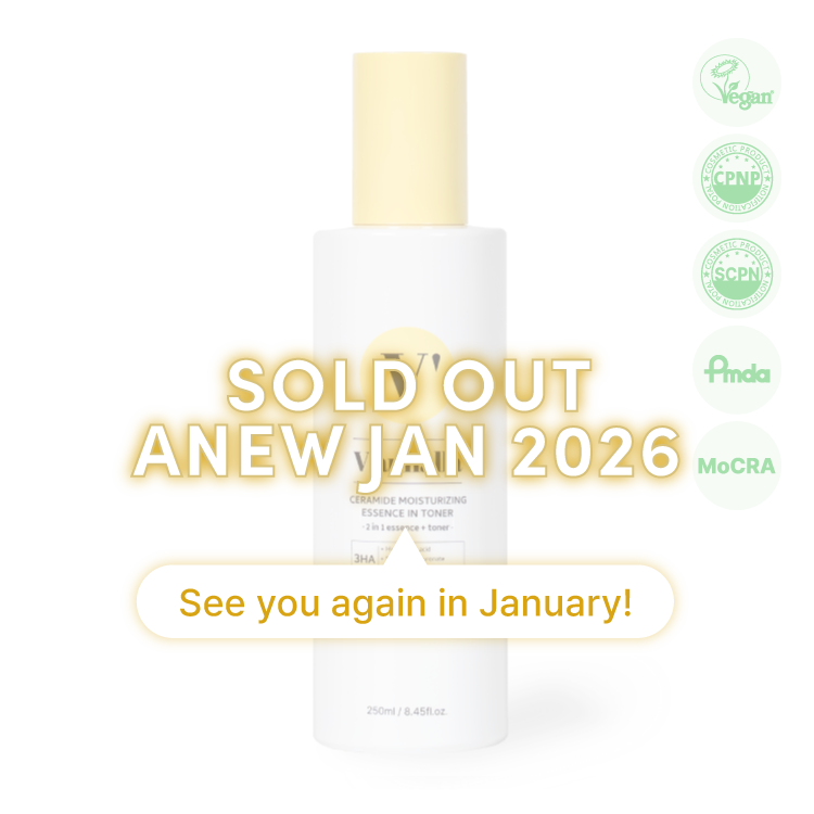 + 세라마이드와 판테놀이 함유된 2 in 1 비건 에센스 토너.